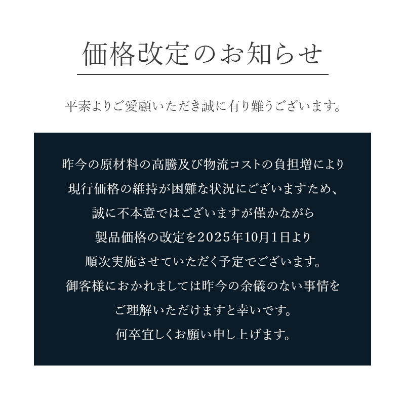 平素よりご愛顧いただき誠に有り難うございます。昨今の原材料の高騰及び物流コストの負担増により現行価格の維持が困難な状況に...